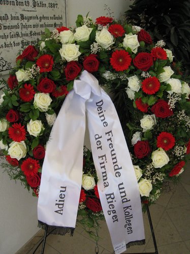 Wir bieten zu allen Werkstücken jeweils in Farbe, Größe und Text individulle gedruckte Trauerschleifen.